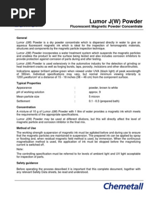 Source: cf.lnwfile.com Lumor j powder consists of finely divided fluorescent magnetic particles which will fluoresce brilliant yellow / green under ultraviolet radiation with a predominant wavelength of 365 nanometres.